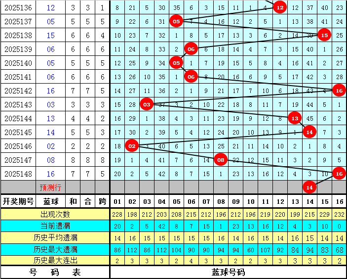 1路红球号码:上期开出了3个,表现相对活跃。最近5期开出9个1路红球号码:01 04 07 10 22 25 28,其中小 号1路红球号码表现活跃,偶数1路红球号码表现活跃。本期参考1路红球号码:01 13 19 25。