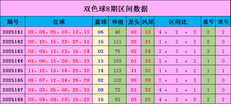 近8期区间比为20:16:12,近期走势:1、2区走势较热,3区走势较温。