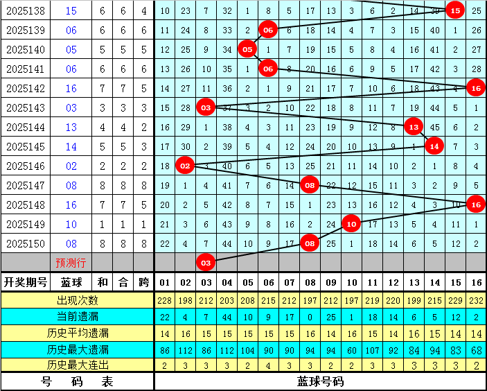 蓝球走势分析:上周二第25148期蓝球开出号码16,最近十周星期二蓝球号码大小比为5:5,奇偶比为3:7,012路比为4:4:2。本期蓝球建议侧重奇数号码,参考蓝球03、05。