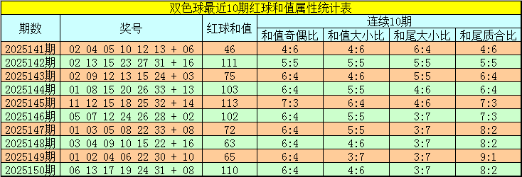 福彩双色球第2025151期红球和值综合分析: