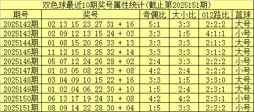 蓝球分析:上期蓝球为小 号04,最近10期大小蓝球号码分别出现5次,走势相当,本期蓝球关注大号,推荐号码15。