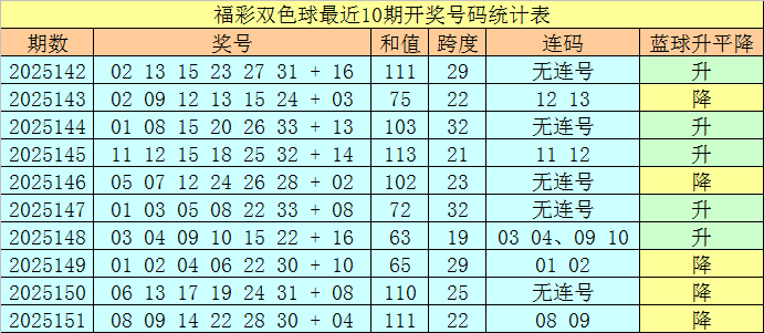 上期开奖:福彩双色球第2025151奖号开出:08 09 14 22 28 30 + 04,红球号码和值为111,首尾间距为22,包含连号:08 09。