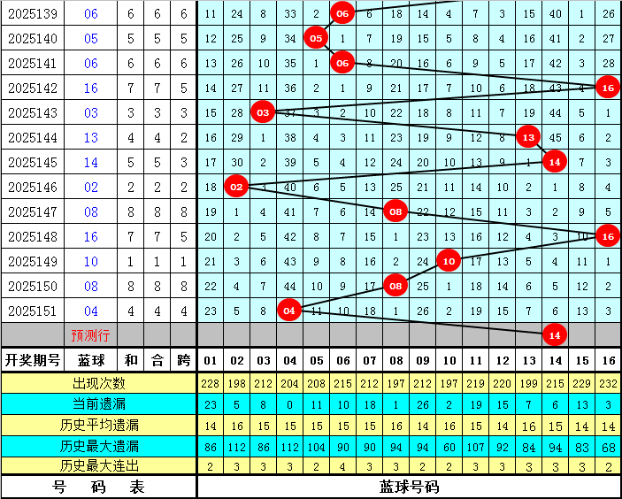 蓝球分析:上期蓝球开出号码04,下降4个点位,最近10期蓝球号码升平降分别为:升、降、升、升、降、升、升、降、降、降,本期防蓝球号码上升,一码蓝球关注14。