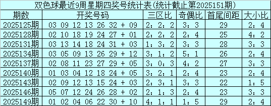 上期开奖:福彩双色球第2025151期奖号为:08 09 14 22 28 30 + 04,其中红球三区比为2:2:2,奇偶比为1:5,首尾间距为22,大小比为3:3。