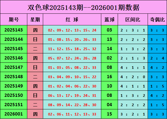 双色球第2026001期开奖:本期开奖号:02 06 11 12 13 33。蓝球:15,奇偶比为3:3。