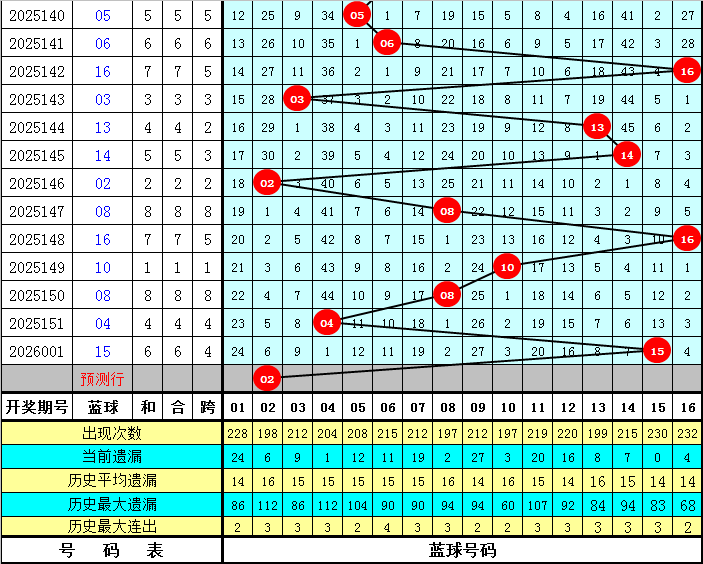 蓝球推荐:02 03 08 10 16