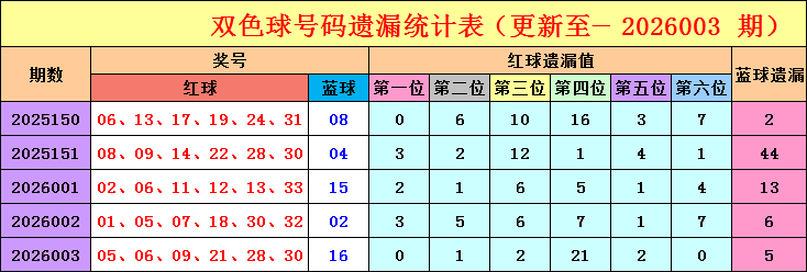 三区定位分析:(在本文中遗漏值3以内的红球为热号,遗漏值4-9之间的红球为温号,遗漏值9以上的红球为冷号。蓝球热号遗漏值在5以内,温号遗漏值在6-15之间,冷号遗漏值在15以上。)