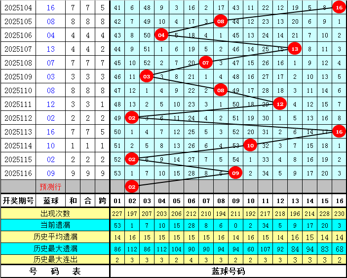 蓝球分析:小 号蓝球近期走势疲软,本期注意小 号蓝球回补,参考蓝球02、03、04、08。