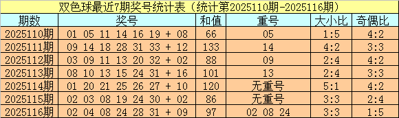 开奖回顾:双色球第2025116期奖号为:02 04 08 24 28 31 + 09,红球和值为97,奇偶比为1:5,大小比为3:3。蓝球开出奇数。