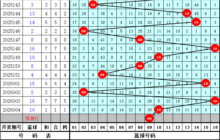 本期蓝球预计出现在:01、02、03、06、09之中,蓝球绝杀8码:04、05、07、08、10、11、14、16。