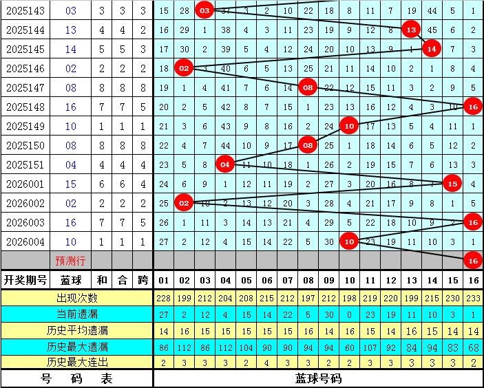 蓝球分析:最近偶数蓝球走势非常热,本期看好偶数蓝球继续热出,参考04、08、12、16。
