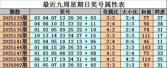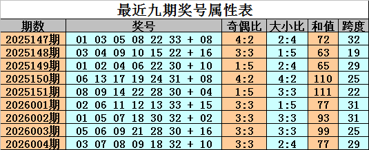 上期开奖:福彩双色球上期第2026004期奖号为:03 07 08 09 18 32 + 10,红球号码奇偶比为:3:3,大小比为:2:4,和值为:77,跨度为:29。