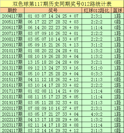 福彩双色球第2025117期历史同期王守礼012路奖号遗漏分析: