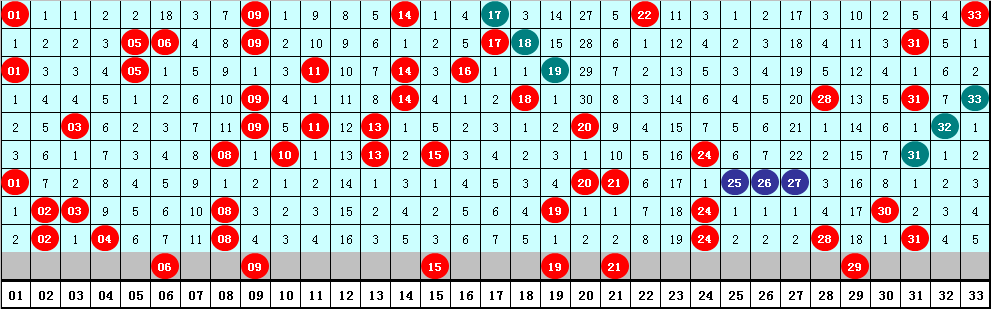 2、凤尾分析:最近十期凤尾号码分布在19-33区间,出现范围较广,凤尾奇偶比为8:2,奇数号码出现较多,本期预计凤尾再出奇数,参考号码29。