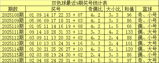 奇偶分析:最近30期奇偶比为9:21,最近10期奇偶比为4:6,最近5期奇偶比为1:4,本期蓝球看好偶数。