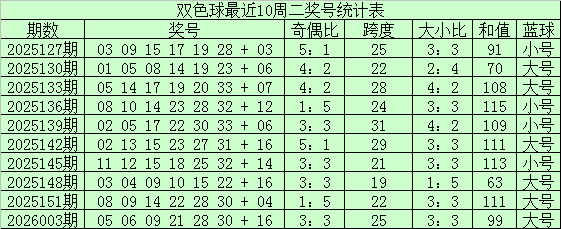 双色球第2026005期开奖号码为:01、20、22、27、30、33+10。其中红球首尾间距为32,和值为133,奇偶比为3:3,大小比为5:1。