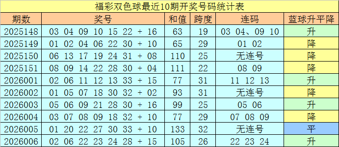 上期开奖:福彩双色球第2026006奖号开出:02 06 22 23 24 28 + 15,红球号码和值为105,首尾间距为26,包含连号:22 23 24。
