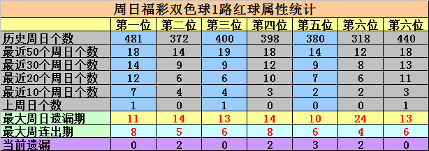 第一位:上周星期日奖号为:01,是1路号码,目前该位2路号码遗漏了5个周日,本周日可以排除2路号码。