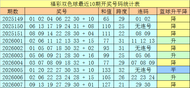 上期开奖:福彩双色球第2026007奖号开出:09 13 19 27 29 30 + 01,红球号码和值为127,首尾间距为21,包含连号:29 30。