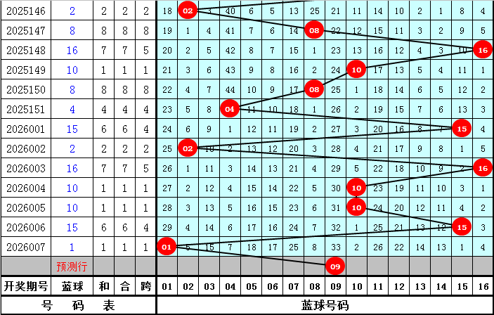 蓝球分析:最近10期蓝球号码遗漏期数分别为:13期、2期、44期、13期、6期、5期、5期、0期、4期、29期,上期开出蓝球号码01,本期注意冷码蓝球解冻,关注蓝球号码09。
