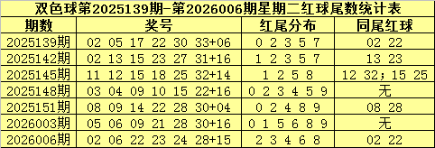 蓝球尾数分析:最近7周星期二开出3个蓝球尾数,重复蓝球尾数明显活跃,本周星期二注意蓝球尾数为近期热码尾数,参考蓝球06。