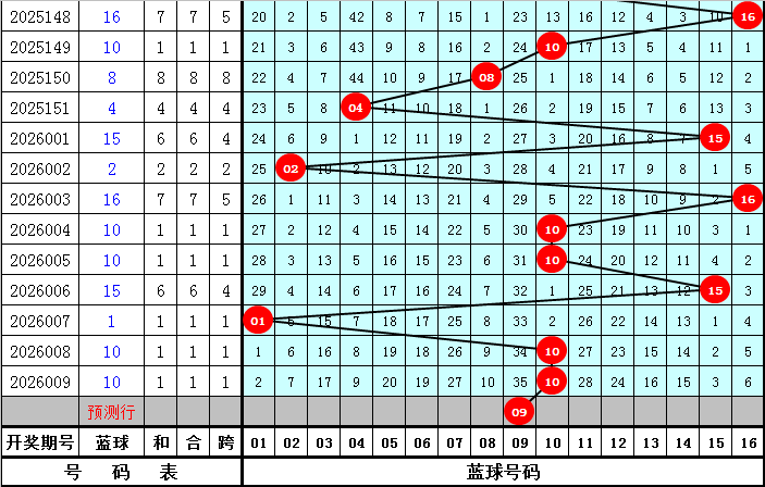 蓝球前10期开出号码为:04→15→02→16→10→10→15→01→10→10。