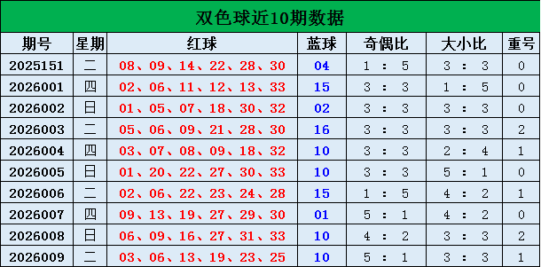 双色球上期开奖号码:03 06 13 19 23 25+10。红球大小比为3:3,奇偶比为5:1,开出1枚重号06。