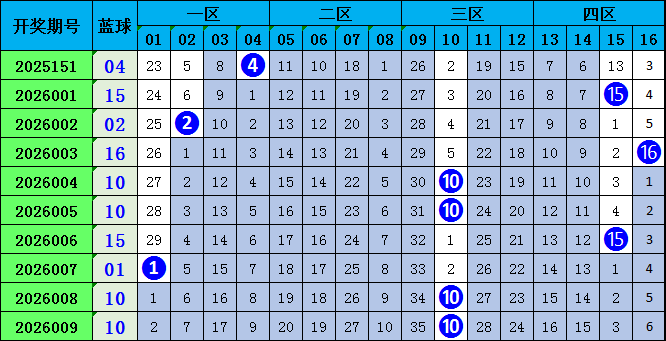 最近5期,蓝球大小比为4:1。大奖号蓝球走势较热,在前10期的数据中,大小比为7:3,显示出蓝球大奖号走热。