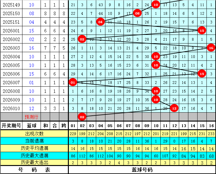 5、同尾分析:近十期同尾开出了8期,同尾出现比例非常高,本期预计再次出现同尾号码,参考号码02 12。