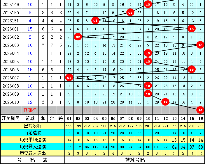 蓝球分析:上期蓝球开出号码12,对比前期上升2个点位,最近10期蓝球号码大小比为8:2,本期预计大号蓝球再出,精选蓝球16。