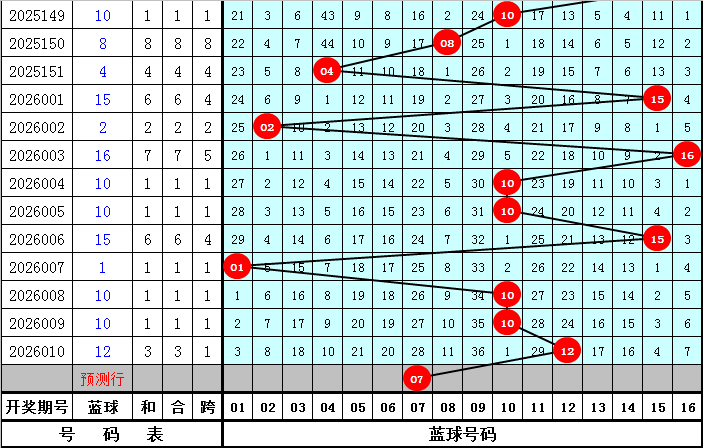 蓝球推荐:第011期历史同期开奖中,蓝球开出频次分别为:08、13出现0次,01、02、04、05、06、09、10、12、14出现1次,03、07、16出现2次,11出现3次,15出现5次,今年同期关注蓝球号码07。